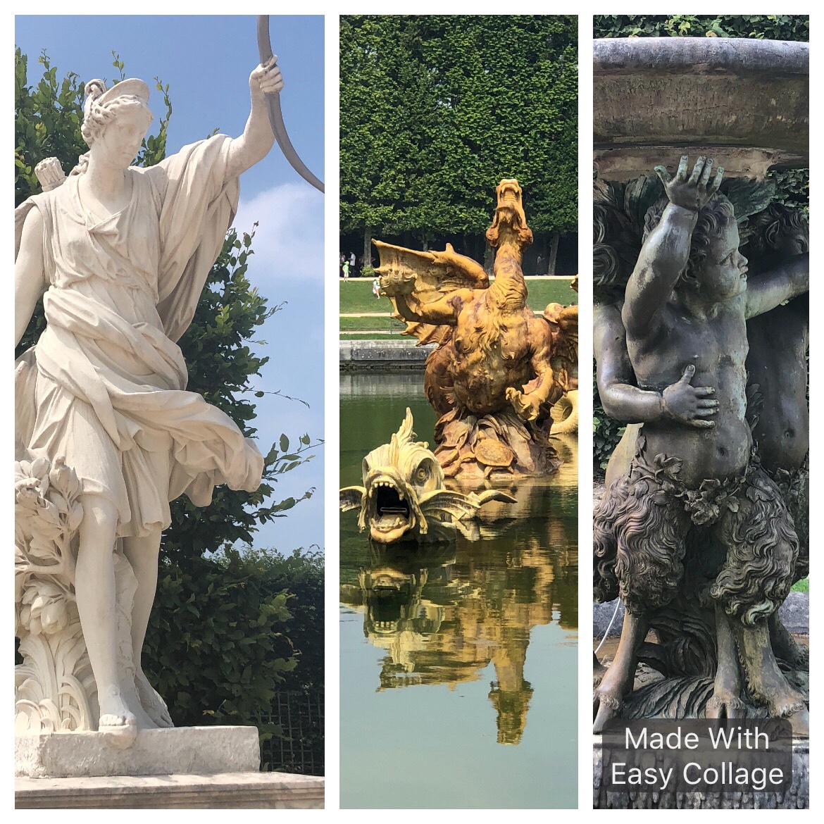 The fountains, which were not turned on when we were wandering through, had all sorts of interesting statues in the centers. My favorite was the angry fish… probably because it is almost gargoylesque! The gardens contain 221 works of art, making it the largest open air sculpture museum in the world, according to the Chateau Versailles brochure.
