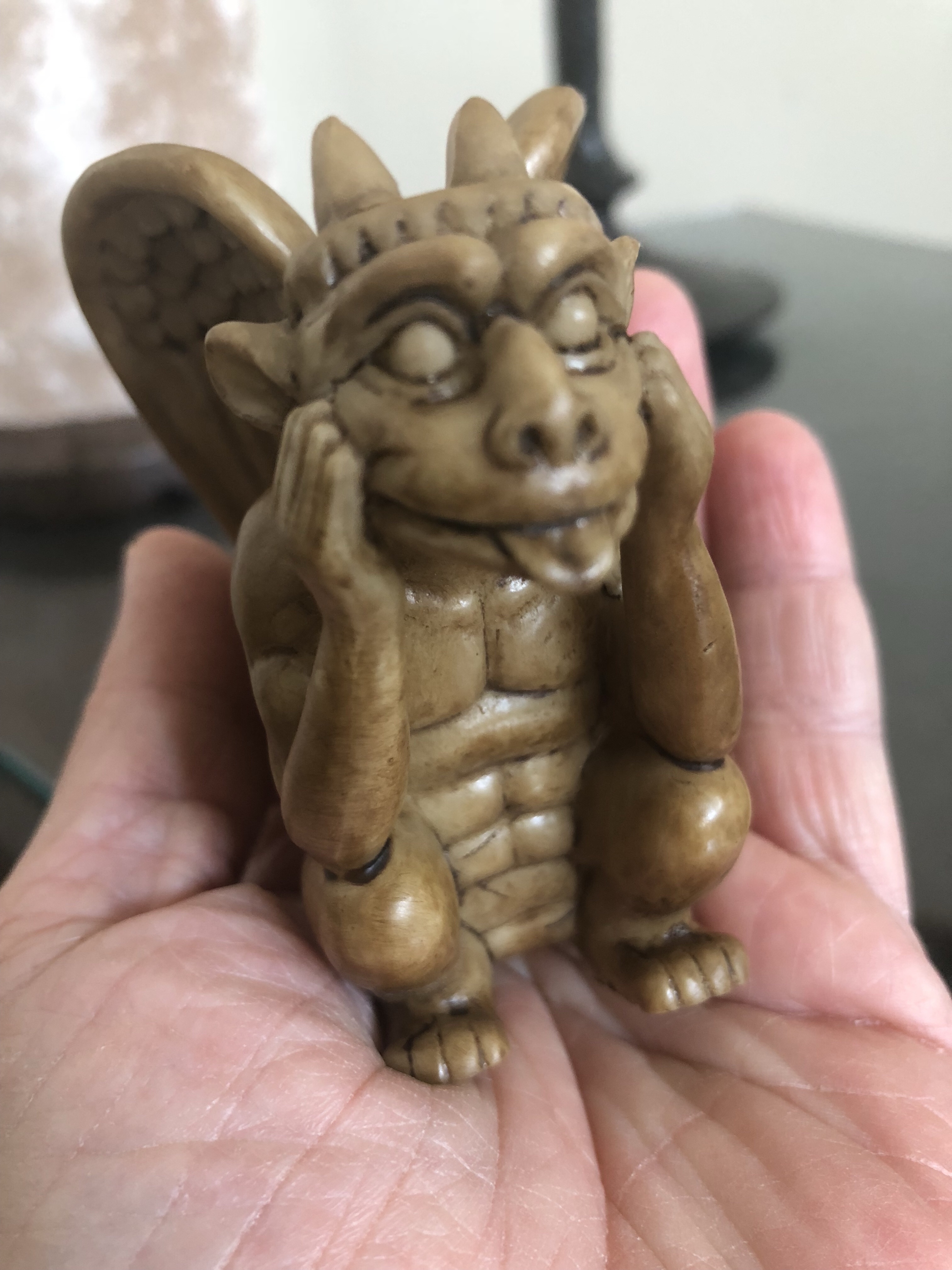 I’m a sucker for gargoyles. I know that my affinity for these little winged gutter spouts would not be the desired response of the cathedral builders, but I find them irresistible. I told myself, as I neared the city, that I didn’t need to buy any Paris goodies since it was less than two years since I last visited my favorite city. I knew, however, as soon as I saw the tiny, spitting gargoyle, that he would have to join my growing flock of gargoyles at home in Atlanta. In the early days of Notre Dame Cathedral in Paris, many believed that the gargoyles scared away evil spirits. If this is true, why WOULDN’T I want to line my house with them? can one ever have too many gargoyles?