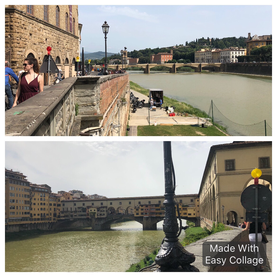 We wandered to the Ponte Vecchio, otherwise known as the Old Bridge. This is the bridge that crosses over Firenze’s Arno River, and is the only bridge to survive the natzi’s during WWII. As we walked to the bridge, strolling through the shops, we learned that this place of expensive jewelers was once a street filled with tanners, meat venders, and smelly fish shops. In the early 1500s, Ferdinand I thought it was too smelly and said that the only shops he wanted in the area were goldsmiths and jewelers. The view from the bridge was lovely, and I knew staring out at the river, that I would have to return to this place of art and romance. One day…