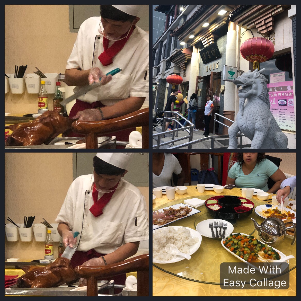 Our next stop was dinner, where we would have our special Peking Duck meal. The restaurant had the chefs carving up the birds for all to see. The meat was put on a platter, and, once again, all the food was served family style on the humongous lazy Susan.