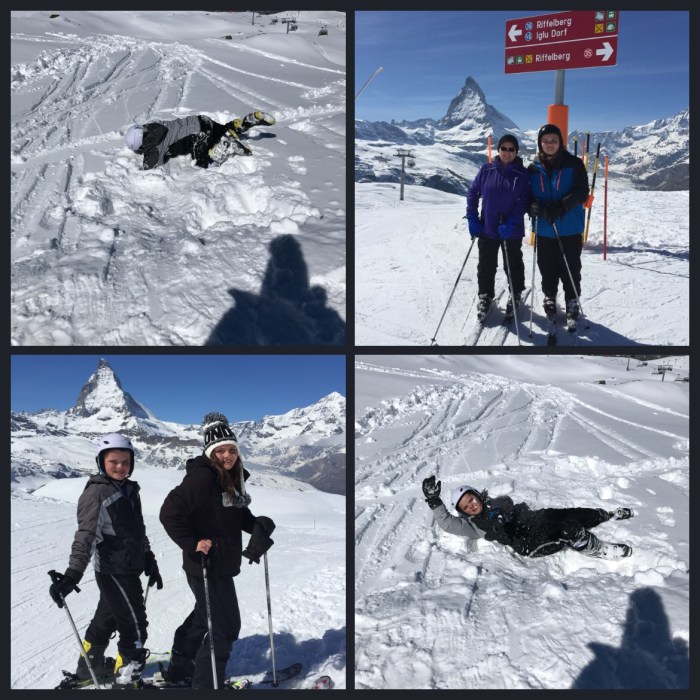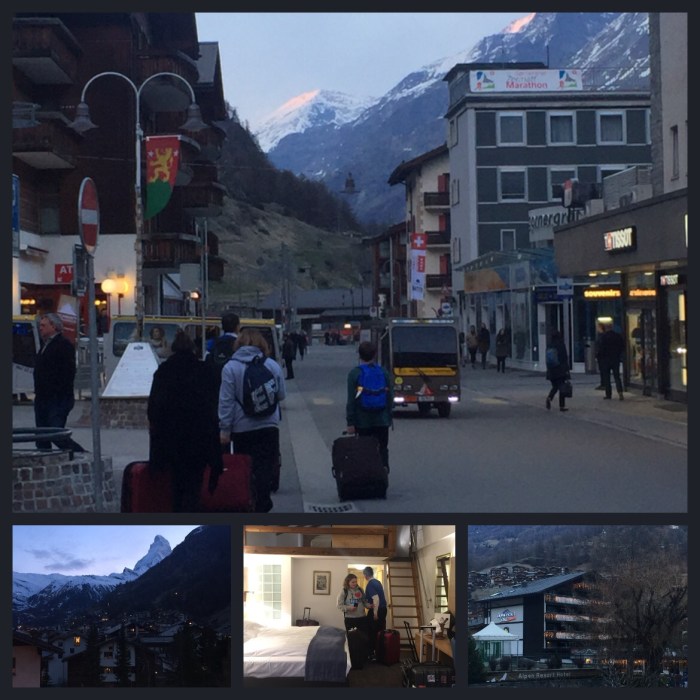 We rolled our luggage down the car-less streets to our hotel- the Best Western Alpen resort, where we had reserved a family style room. We checked in and we’re thrilled with the accommodations. Our room had two twins and a pullout downstairs and a loft with two twins. The best part was the balcony, which offered us a view of the peak that makes Zermatt famous: the Matterhorn!