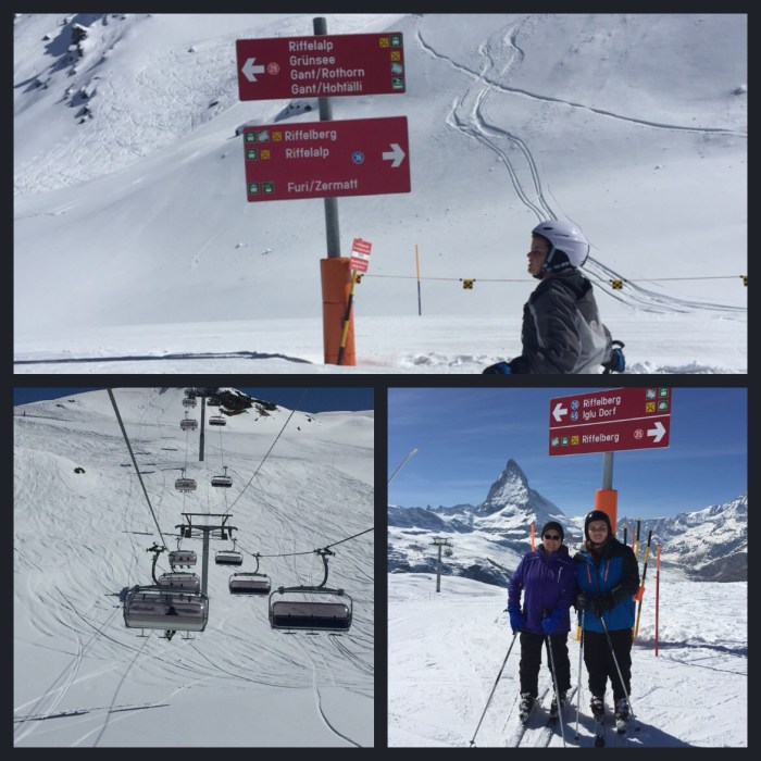We spent the day skiing the Gorgenaut side of Zermatt- happily exploring the long, powdery runs. All the trails were clearly marked by level, and most were delightfully wide and uncrowded. In fact, many times I was alone on the run- as my family raced to the bottom!