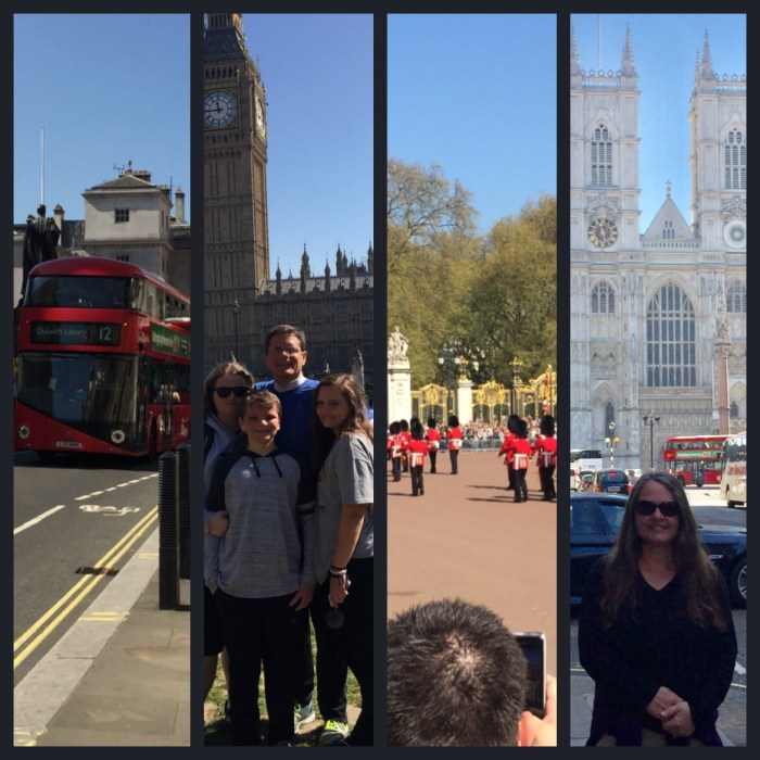 We flew from Orly to Heathrow, and checked into the Heathrow Marriott for one final evening. We ate a late dinner of fish and chips- maintaining the mantra of “when in Rome”… and hit the proverbial hay! The final morning, we opted to Uber to Hyde Park, where we wandered in and out, then walked up the side of Green Park all the way to Buckingham Palace, where we waited with the crowds to see the Changing of the Guards! From there, we went to Westminster Abbey and Big Ben before heading back to the hotel to check out.