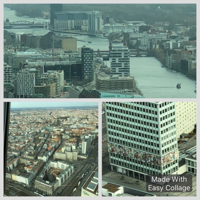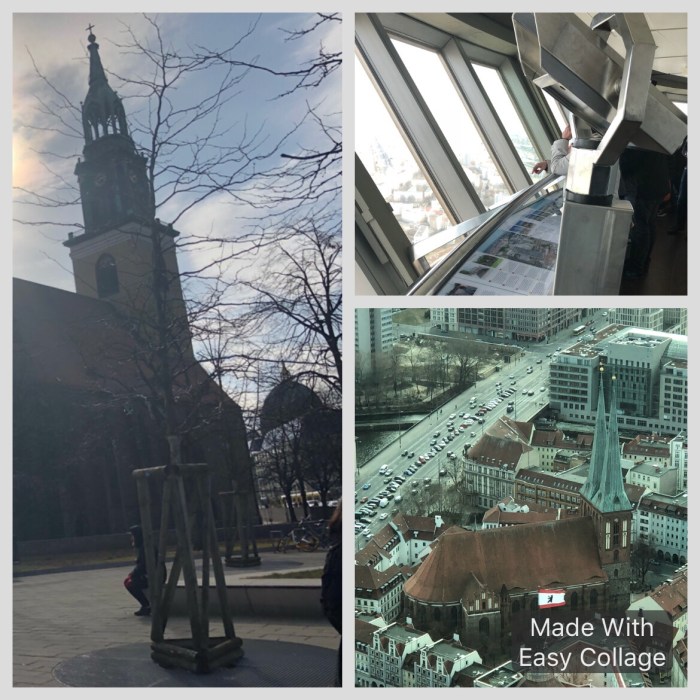 I made plans to go up to the top of the TV Tower with two buddies I’d met on the tour- Tim- a special ed teacher from New Mexico and David-an art teacher from south Chicago. These guys wanted to do all the stuff I wanted to do- which was the tower and a half day of what David called an “urban hike”. Several other groups were going shopping and trying to stay out of the below freezing temps, but I wanted to explore and see more of what Berlin had to offer!