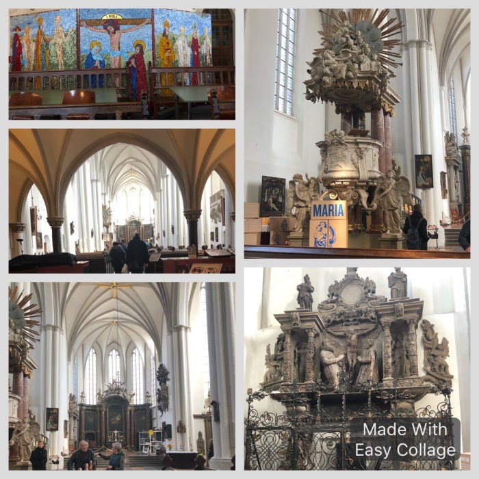 Our first stop was at St. Mary’s Church. We had walked past this on our first day, but had not gone in. We walked in and completely missed the glassed in exhibit showcasing the “Dance with Death” , a fresco painted in 1485. Inside, I was confused because there was a three panel mosaic that had skeletons dancing with people… but Then I remembered it was a fresco. We toured the church, and admired the pipe organ and the ornate pulpit.