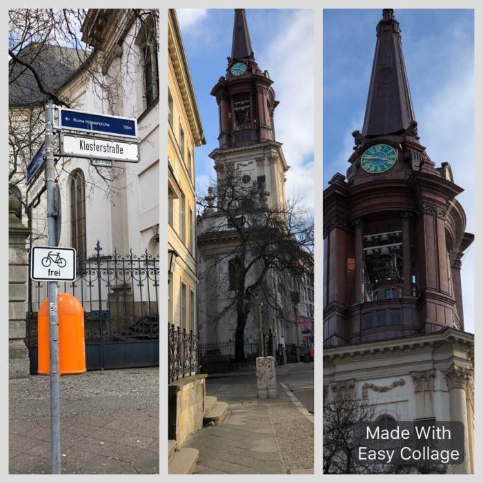 Our next stop was at the oldest church in Berlin- Nikolaikirche or St. Nicholas’ church. The experience at this church perhaps started a downward trend of how the locals responded to us… the woman at the door glared at us. We went in, and another man glared at us. We saw that if we wanted to enter and take photos it would be 16.00 euros. I wasn’t up for spending that, and neither were my pals. David tried to head out a side door and got yelled at by the eagle-eyed man. We left in a bit of a hurry.