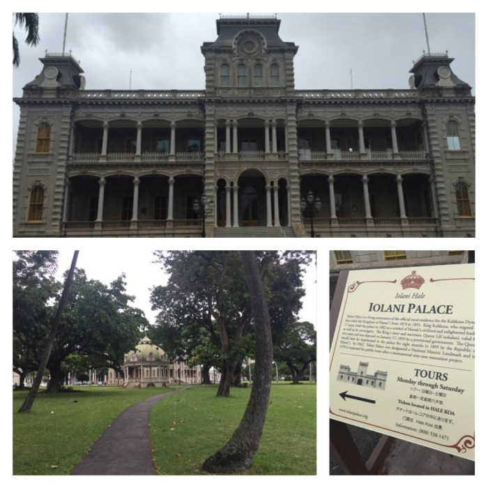 As we approached Lolani Palace, my attention was momentarily interrupted by a drunk guy who was dancing and waving to me on the palace lawn. This palace was once the original residence of the King Kalakaua and Queen Lili’uokalani, who were the last monarchs of Hawaii. Also on the grounds is the famous gazebo, which was built for inaugurations, and is now used for local concerts and weddings.